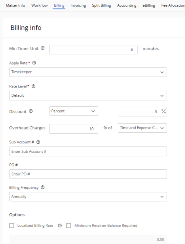 Clients such as large insurance companies require eBilling formats using UTBMS billing codes from their lawyers. If you did not enable eBilling while adding the matter, you can do so here.